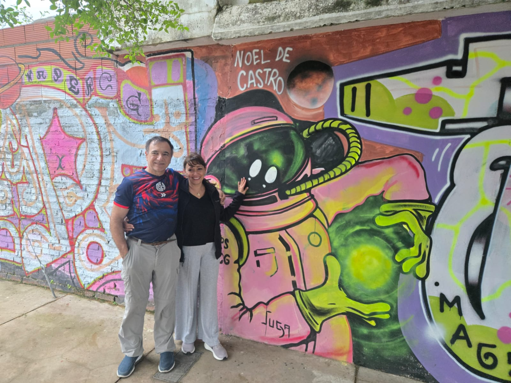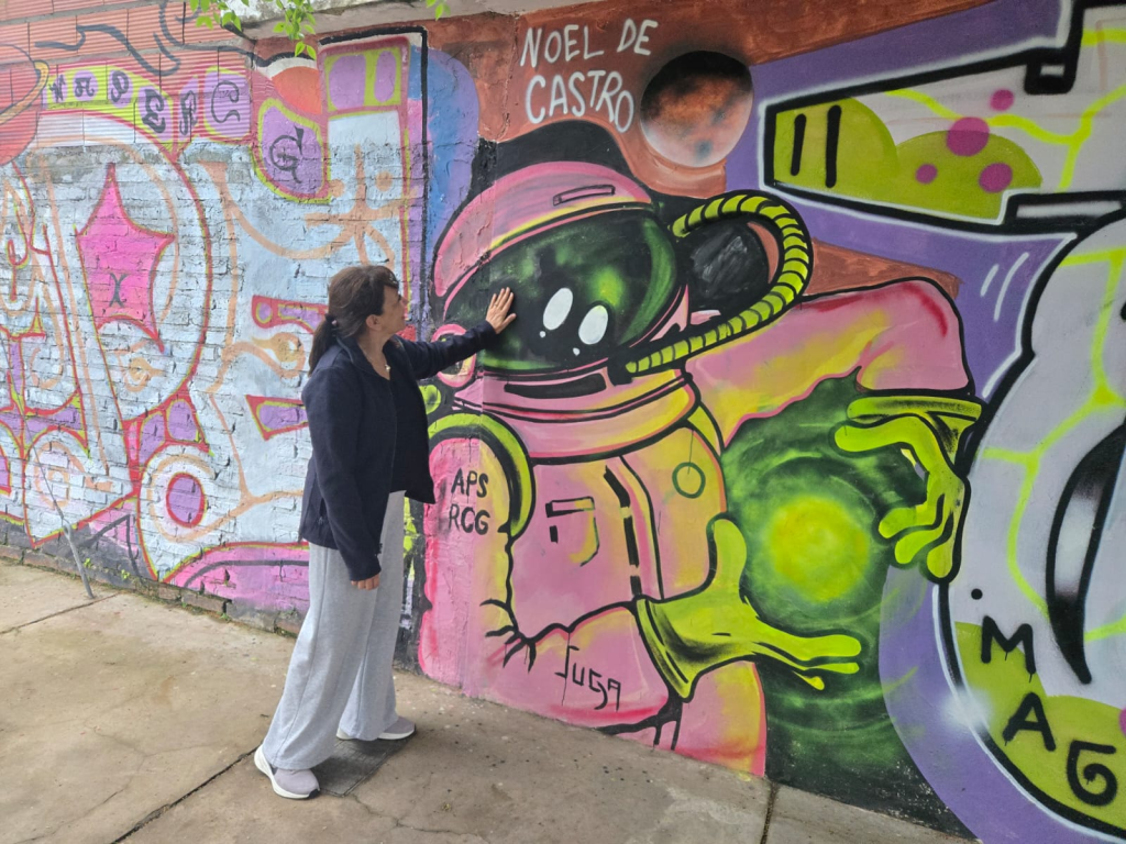 La obra, realizada con autorización del propietario del inmueble, Tiago, quien es integrante del Centro de Amigos de la Astronomía Reconquista, rinde homenaje a María Noel de Castro, ingeniera biomecánica oriunda de Salta que fue seleccionada por una empresa estadounidense para convertirse en la primera mujer argentina en viajar al espacio. Su misión está programada para 2027, con destino a la Estación Espacial Internacional.
